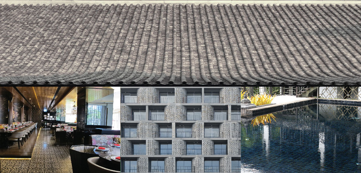 กลุ่มวัสดุดินเผา และซีเมนต์ ที่เป็นกระเบื้องมุงหลังคาในรูปแบบหลากสไตล์